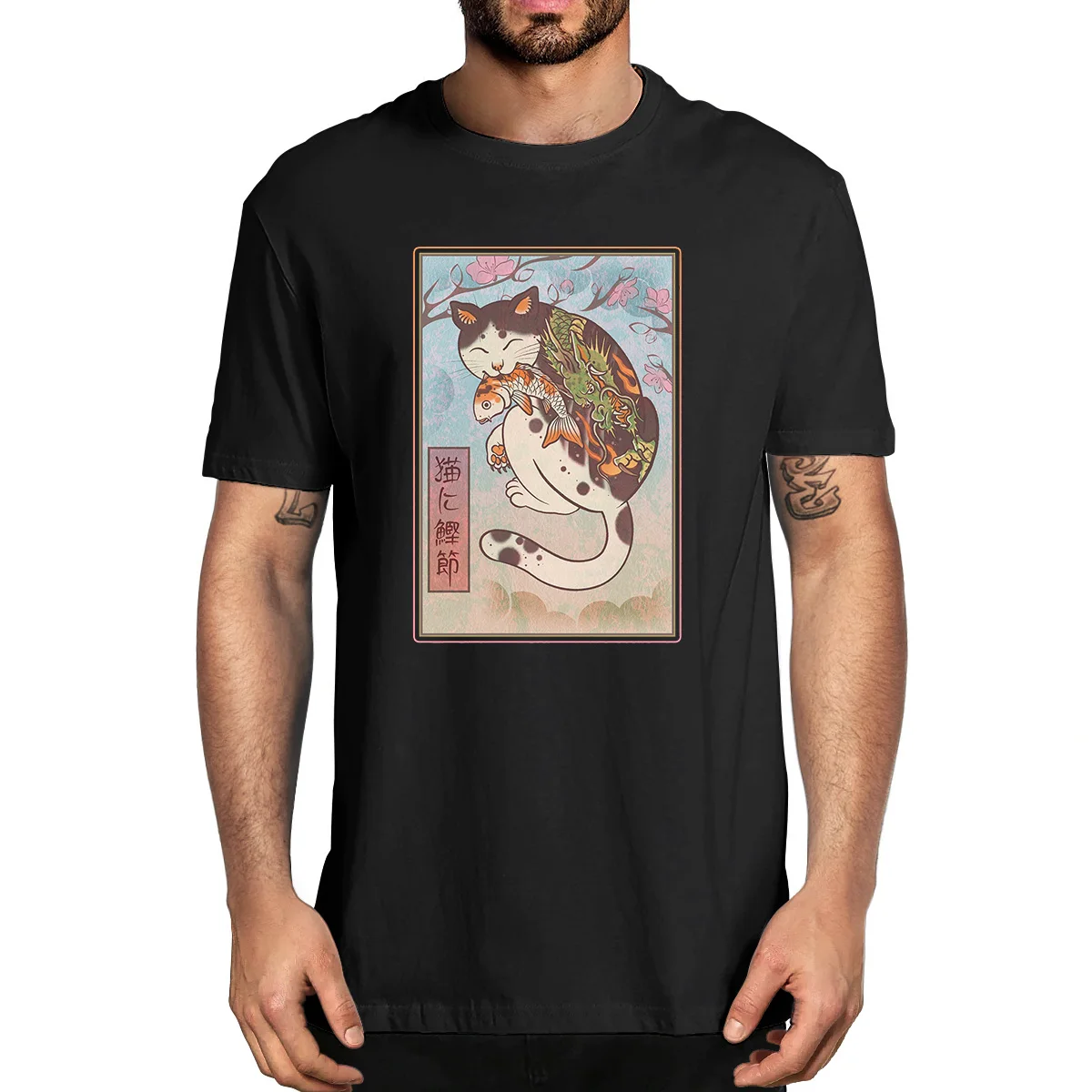 Футболка Мужскаяженская оверсайз с рисунком кошки, 100% хлопок