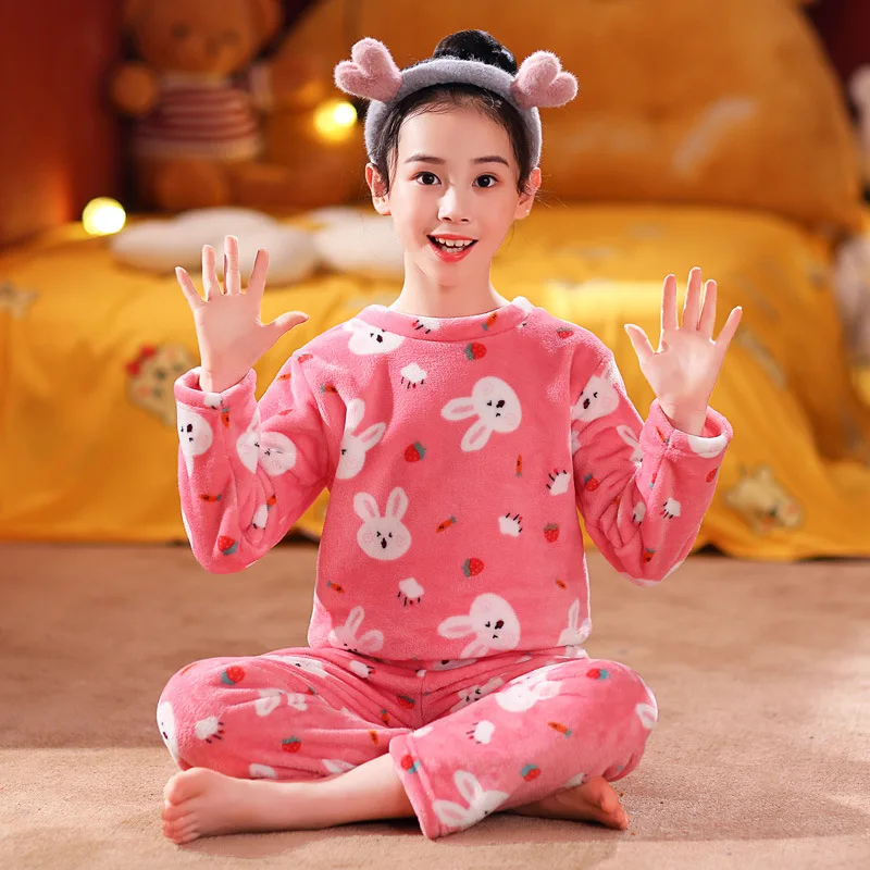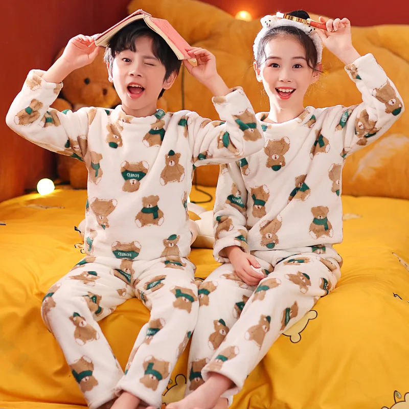 Зимние Детские комплекты детской одежды из кораллового флиса, теплая Фланелевая Пижама для мальчиков и девочек, комплекты пижам, зимняя одежда для подростков