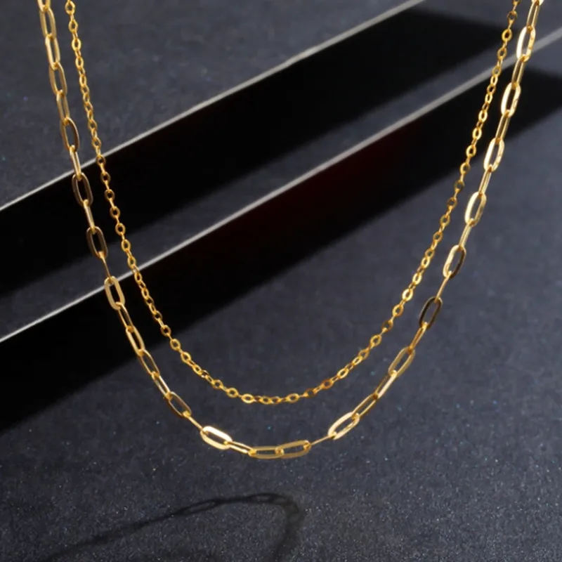 Женское колье с двойной цепочкой, однотонное ожерелье в виде желтой розы, близок к ключицам, яркий блеск, 18K, AU750