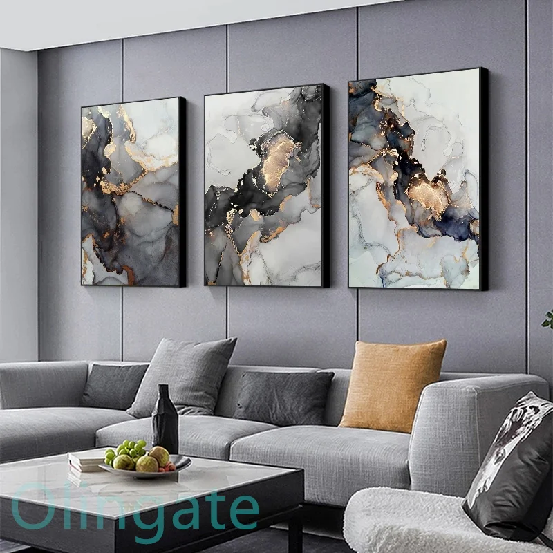 Абстрактный Золотой Черный Серый Мраморный Холст плакат настенная живопись скандинавские плакаты и принты настенные картины для декора гостиной
