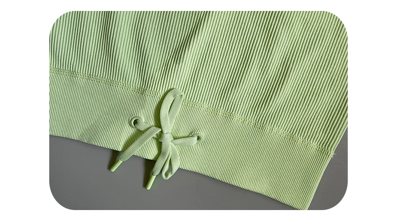 Искусственный шнурок на завязках спереди, плотно прилегающий к телу, укороченный, бесшовный, ультра эластичный.