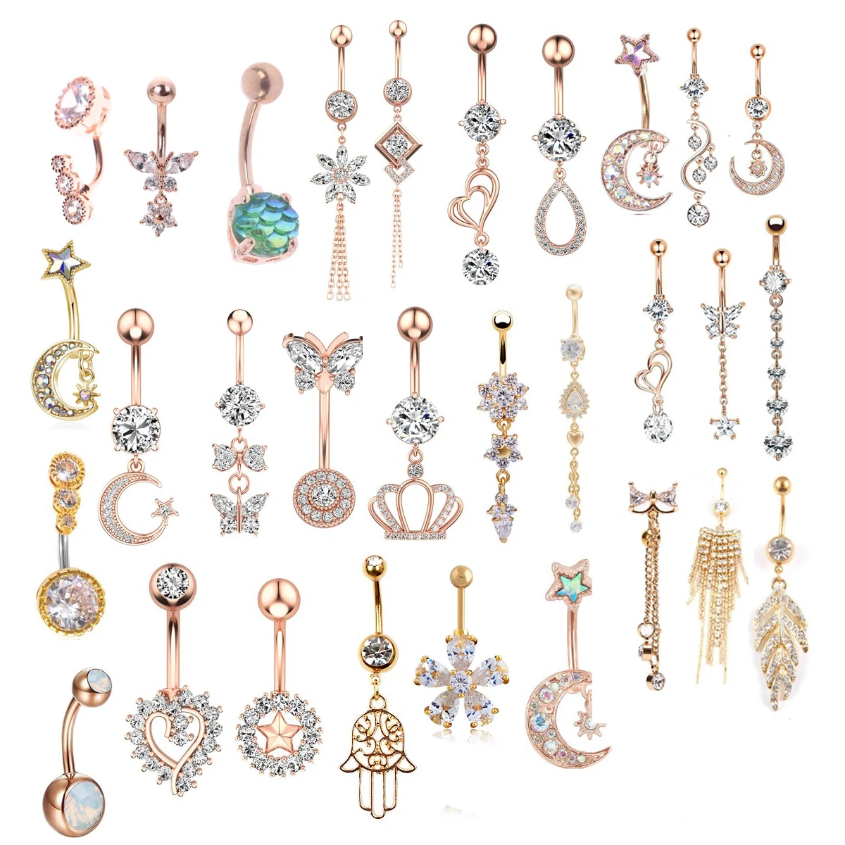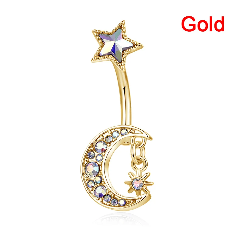 Разные типы 14 г золотой цвет нержавеющая сталь кольцо для пупка Цветок Сердце CZ кристалл пупок кольца Бабочка пирсинг для пупка