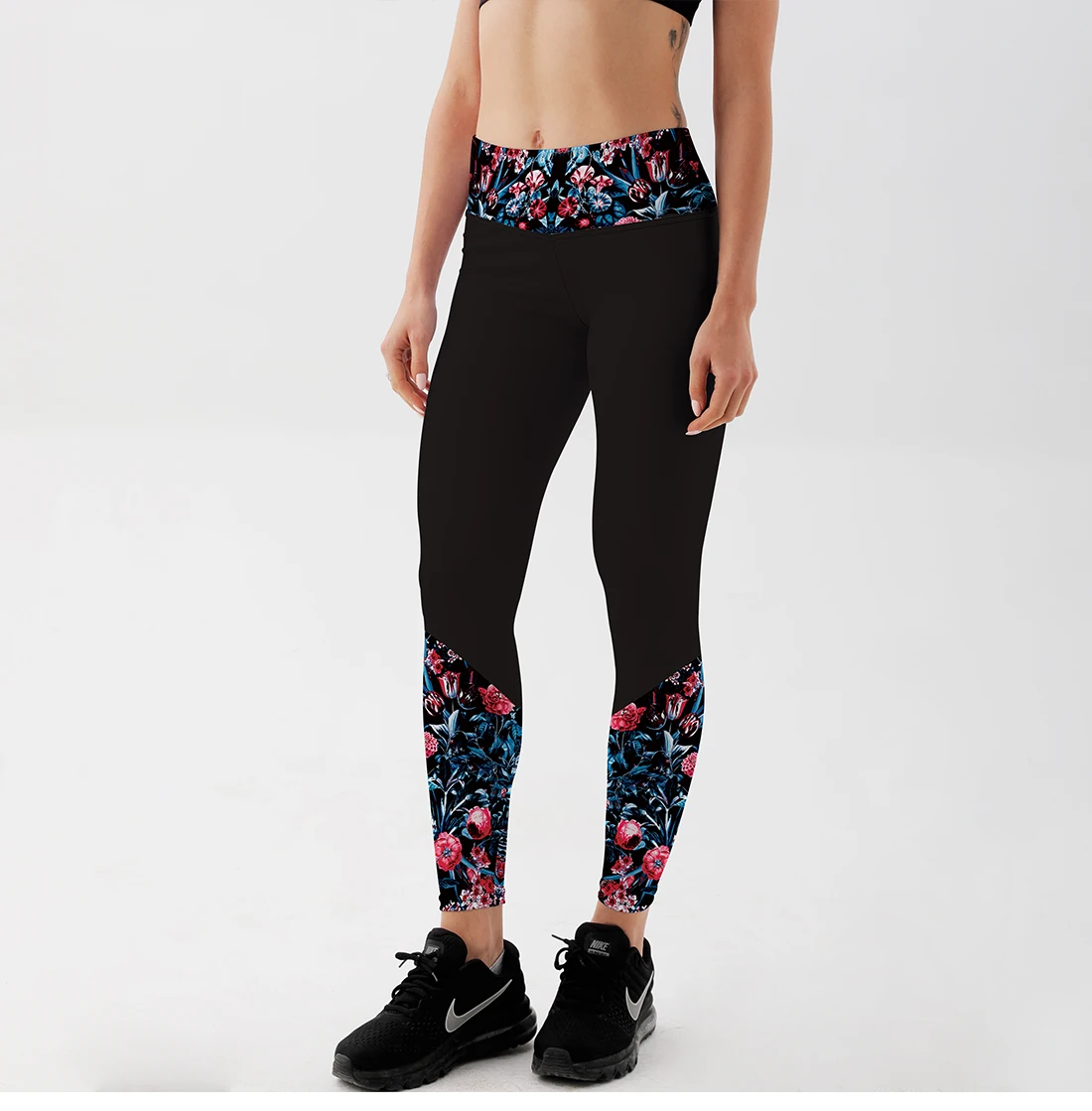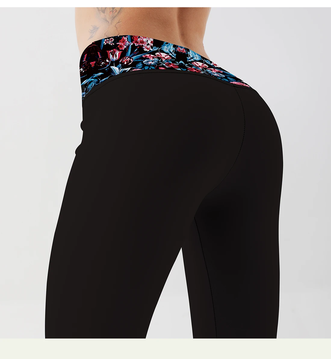 Леггинсы женские, черные, с цветочным принтом, с высокой талией