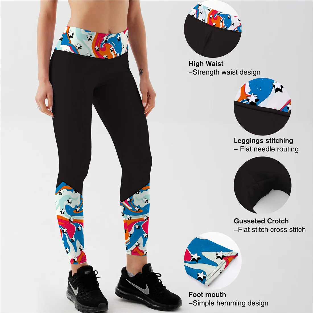 Женские леггинсы для фитнеса из 12% спандекса с принтом