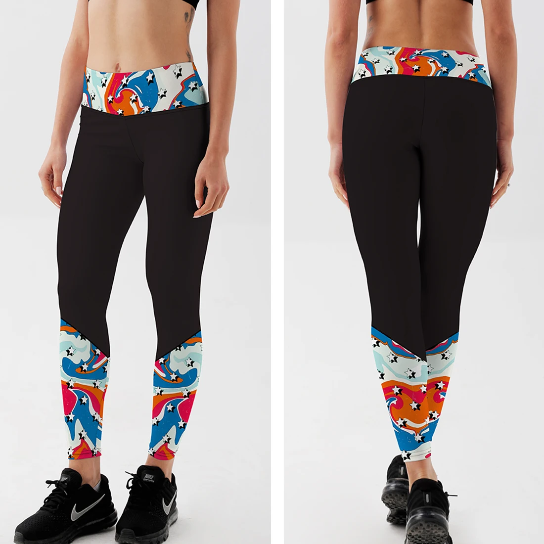 Эластичные леггинсы для фитнеса с принтом в виде звезд, винтажные с...