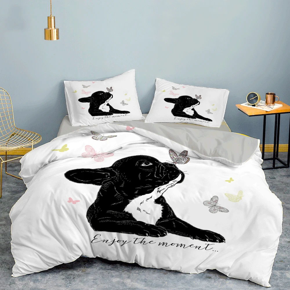 Комплект постельного белья ZEIMON для детей с принтом французского бульдога, полиэстер, пододеяльник, наволочка, Королевский размер, пододеяльник