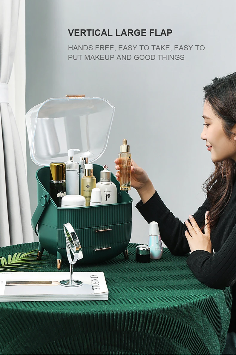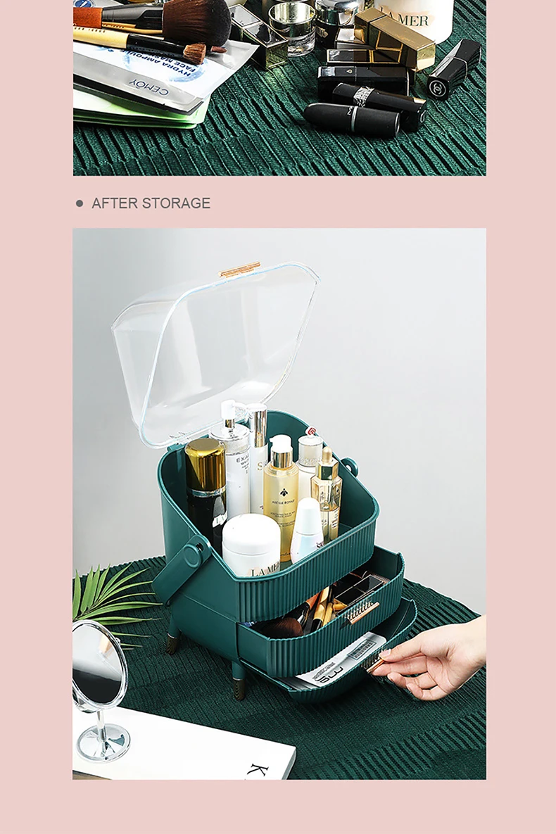 Высококачественный ящик для хранения косметики, стеллаж для хранения средств по уходу за кожей, шкатулка для ювелирных изделий, Пылезащитная настольная косметика