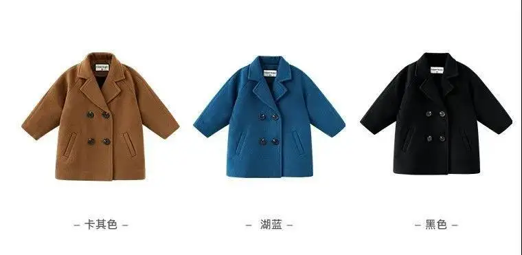 Зимние куртки, пальто для мальчиков и девочек, шерстяной двубортный...