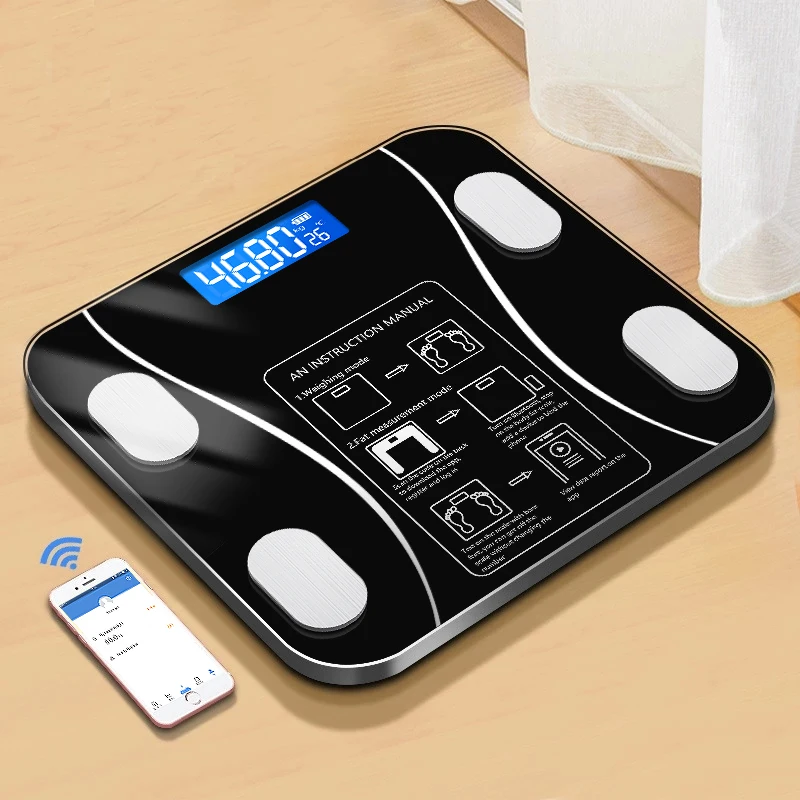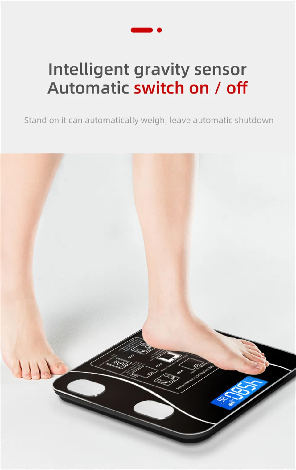 Весы электронные цифровые с ЖК-дисплеем, умный анализатор индекса массы тела, жира, индекса массы тела, для ванной комнаты, Bluetooth