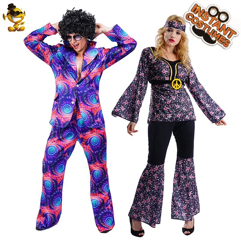 Ретро-костюмы в стиле 60-х и 70-х годов, женская и Мужская одежда для дискотеки, костюмы для Хэллоуина и пар для взрослых