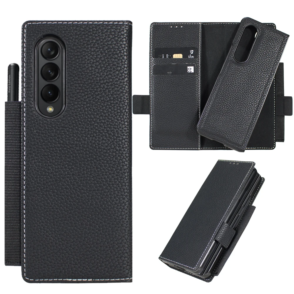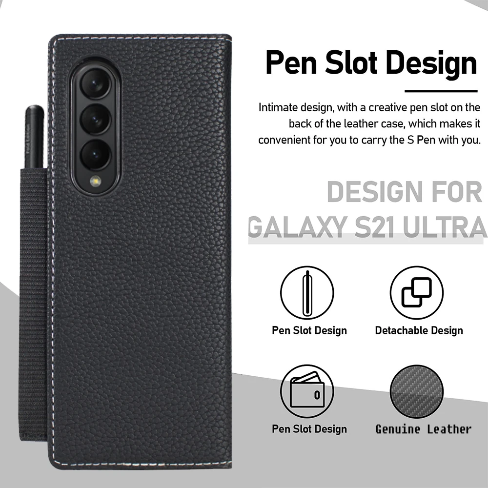 Чехол для Samsung Galaxy Z Fold3 + Оригинальный S Pen Fold 3 Edition, чехол из натуральной кожи, Магнитный съемный держатель со встроенным слотом