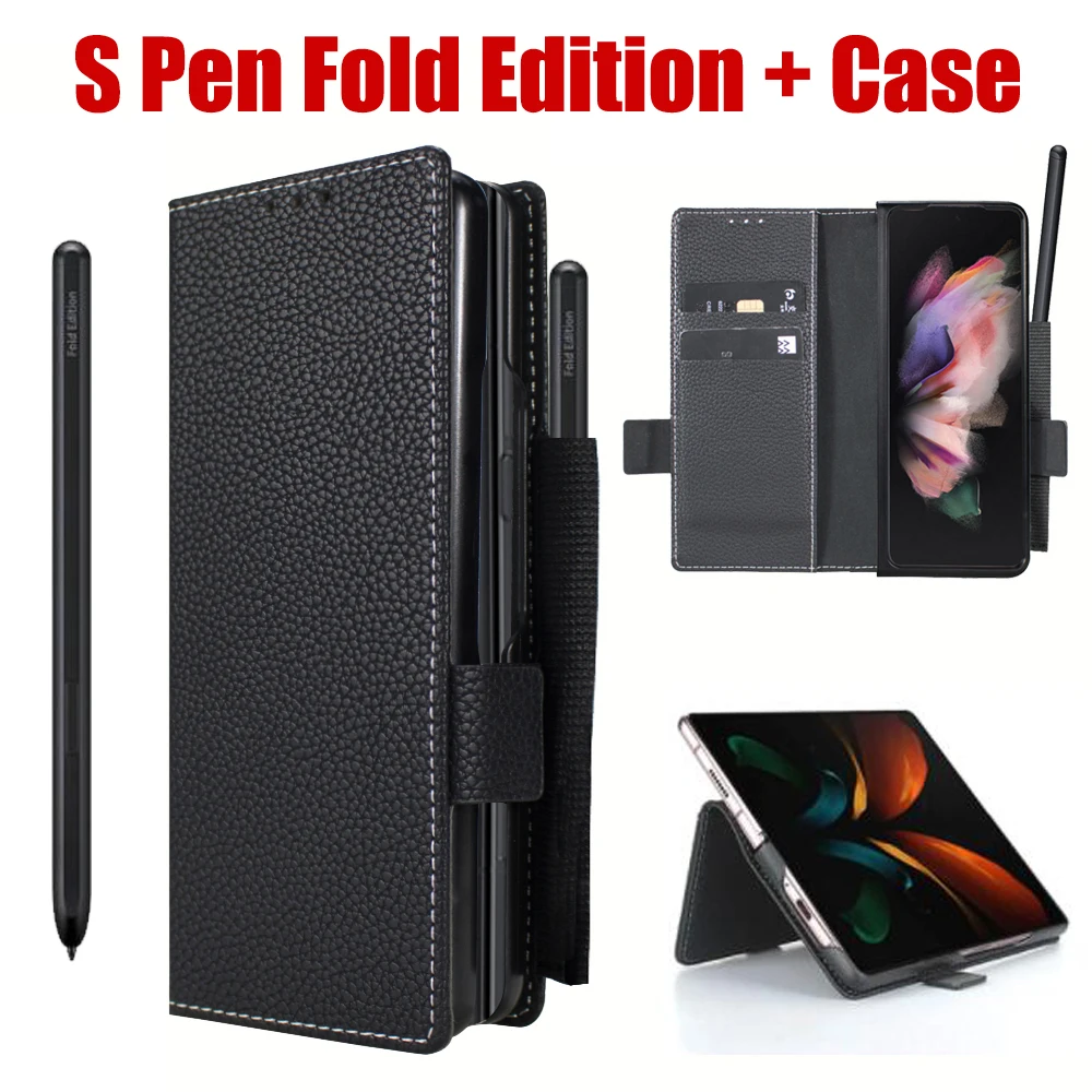 Чехол для Samsung Galaxy Z Fold3 + оригинальная ручка S Fold 3 Edition, чехол из натуральной кожи, Магнитный Съемный встроенный слот-держатель