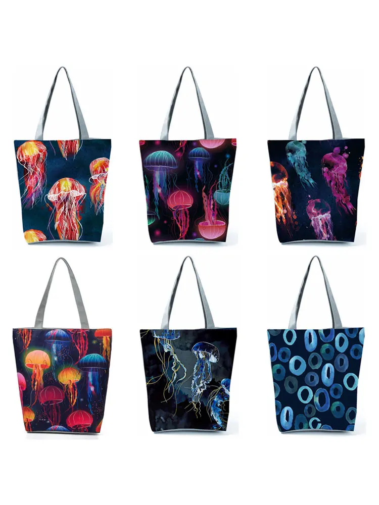 Женские сумки с принтом медузы, женская сумка на плечо, модная вместительная сумка для покупок, дорожная пляжная сумка, цветная крутая Сумка-тоут, Прямая поставка