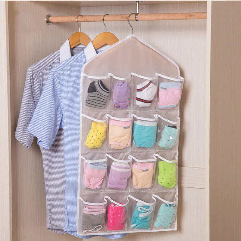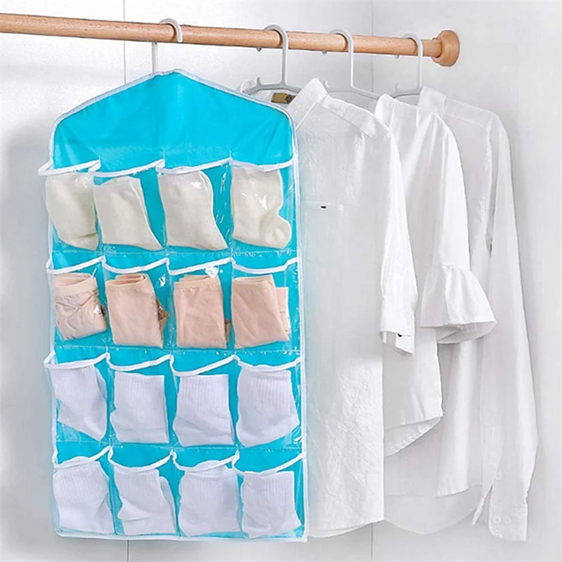 Прозрачная подвесная сумка для носков, галстуков, бюстгальтеров, нижнего белья, 16 Карманов, вешалка, органайзер для хранения, складной шкаф, настенные подвесные сумки