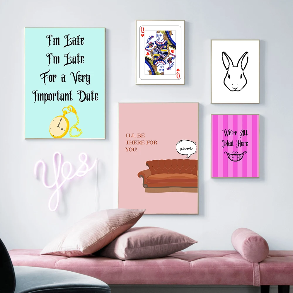 Скандинавский Мультфильм Алиса в стране чудес иллюстрация плакат друзья ТВ-шоу классическое настенное Искусство Холст Картина для домашнего декора
