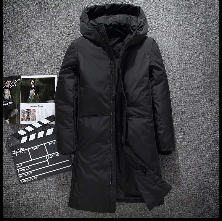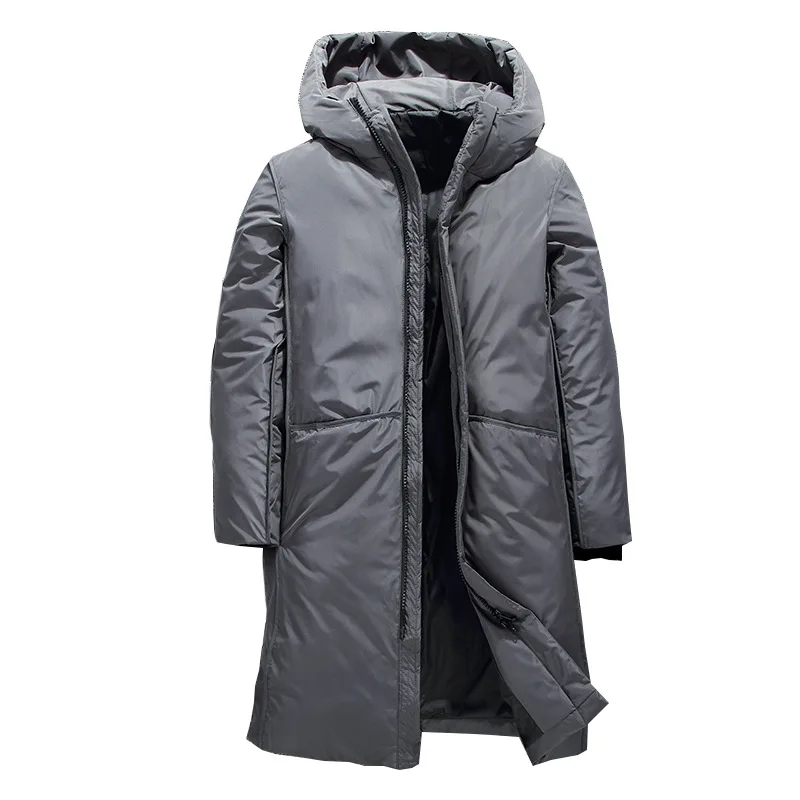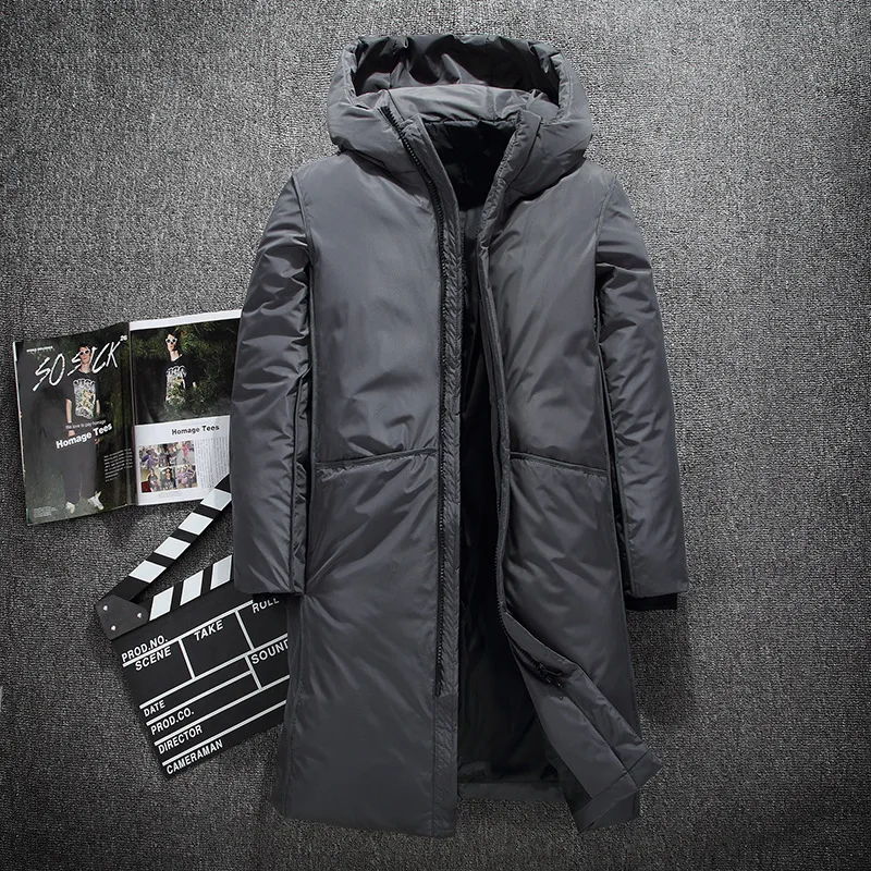 Теплое пальто на белом утином пуху, мужские пальто, новинка 2022, толстый зимний мужской белый пуховик, брендовая одежда, Длинная черная куртка с капюшоном