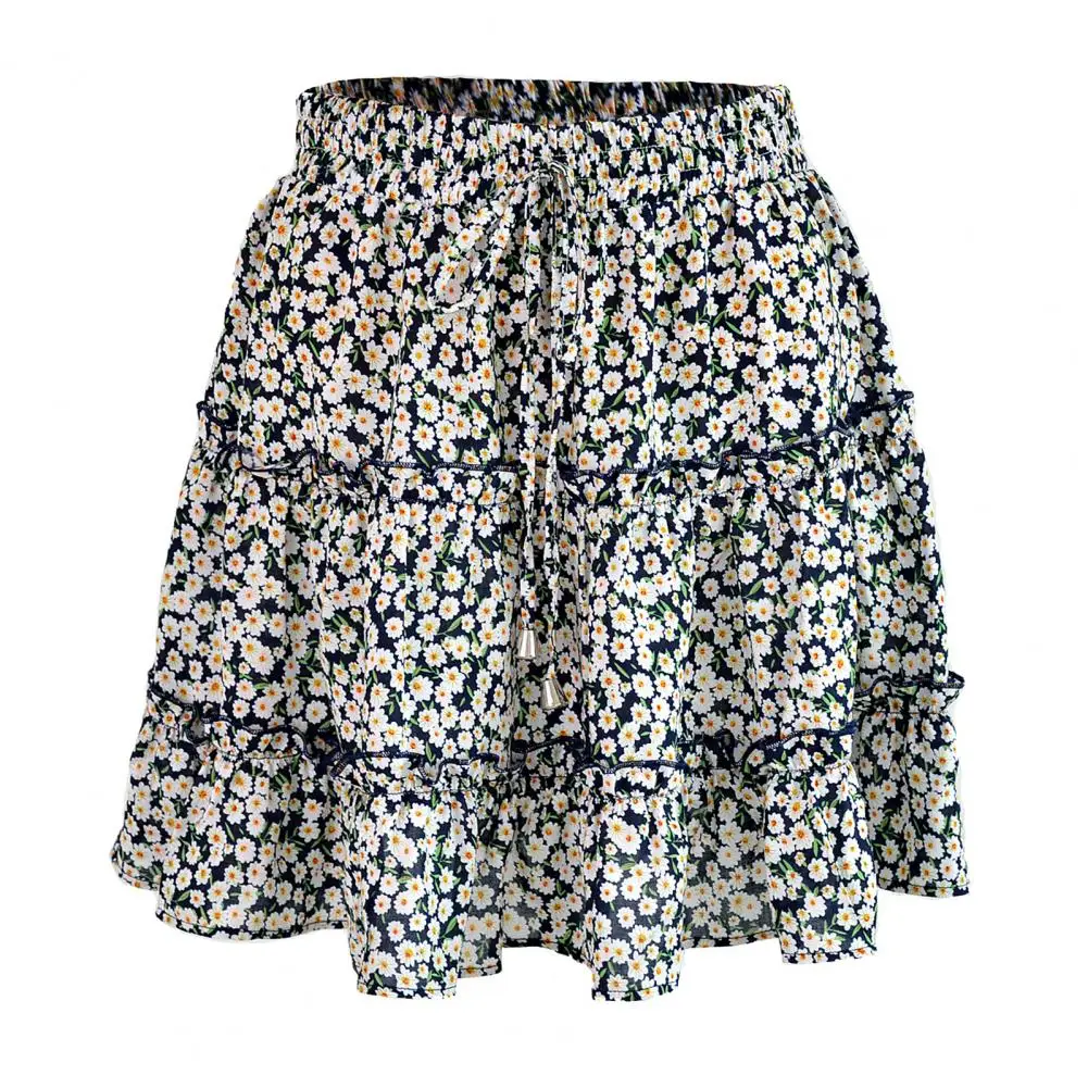 Летняя пикантная мини-юбка с цветочным принтом в стиле бохо, Женская бандажная модная короткая юбка с высокой талией и оборками для женщин, юбки в складку