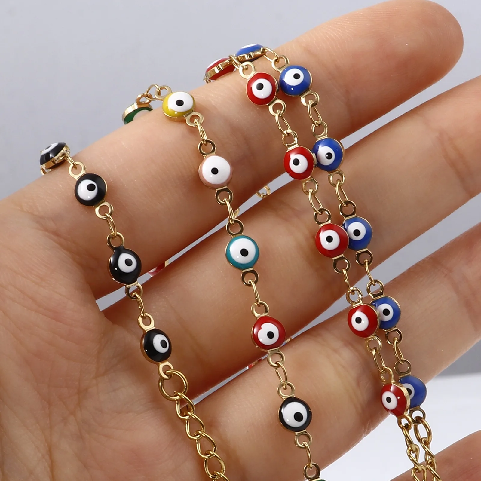 1 шт. религиозные браслеты из нержавеющей стали, позолоченный разноцветный браслет под глаза с эмалью, ножные браслеты, модные ювелирные изделия, длина см