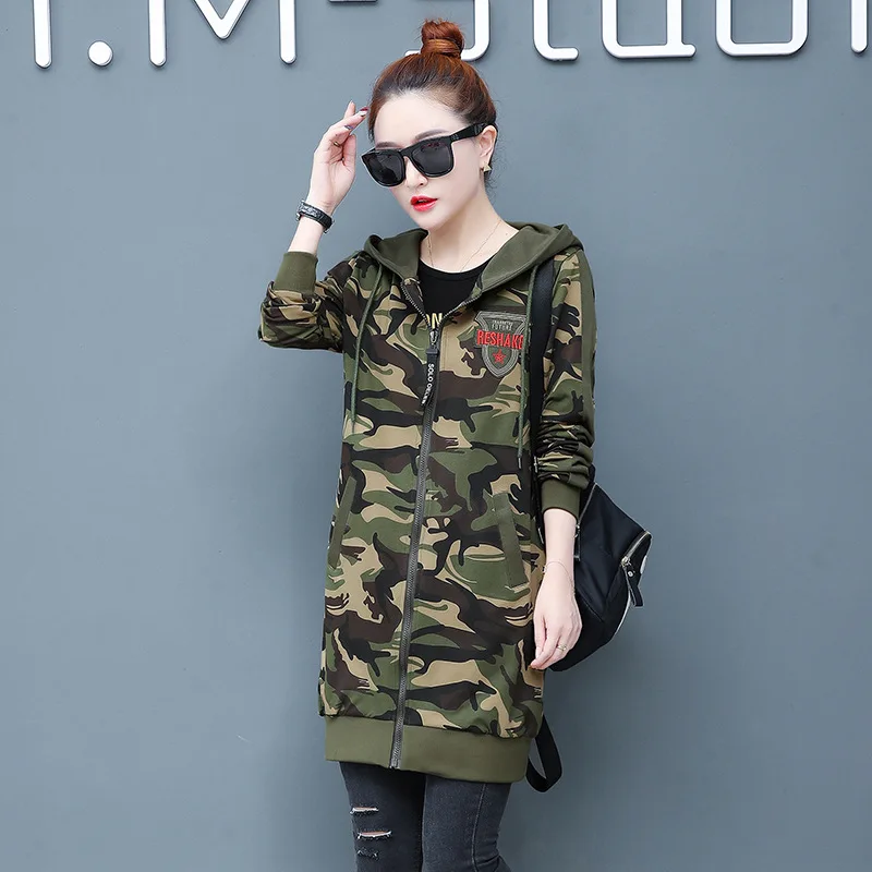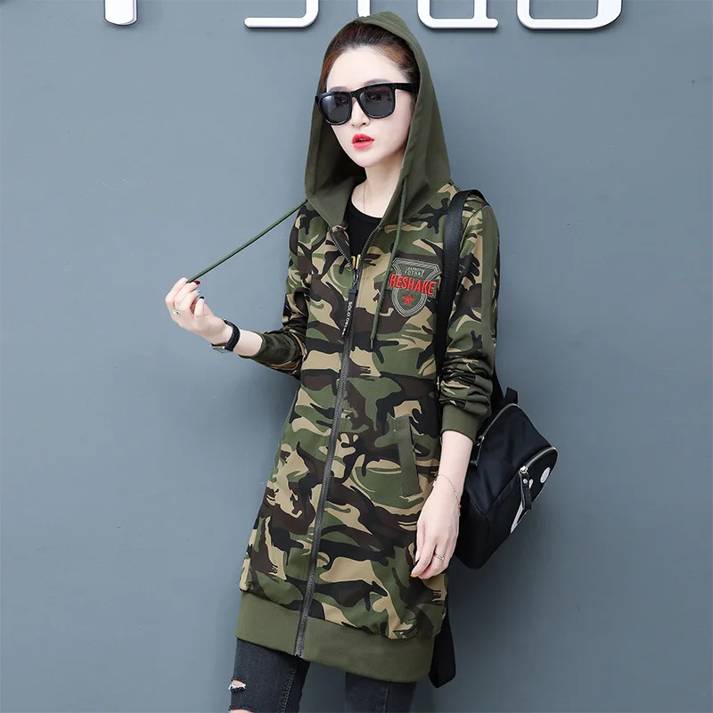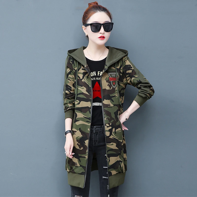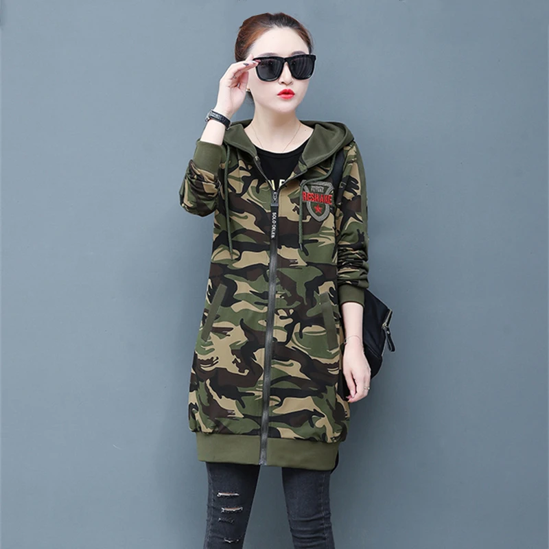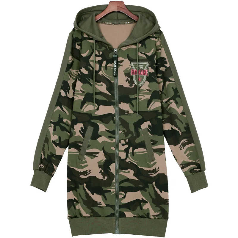 Женская длинная камуфляжная куртка с длинным рукавом, батальных размеров