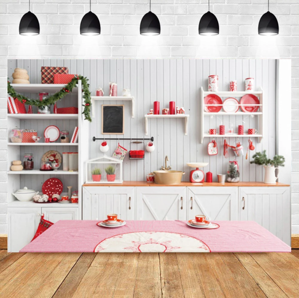 Рождественский кухонный Декор Laeacco, белая полосатая деревянная доска, обеденный стол, день рождения, фон для фотосъемки