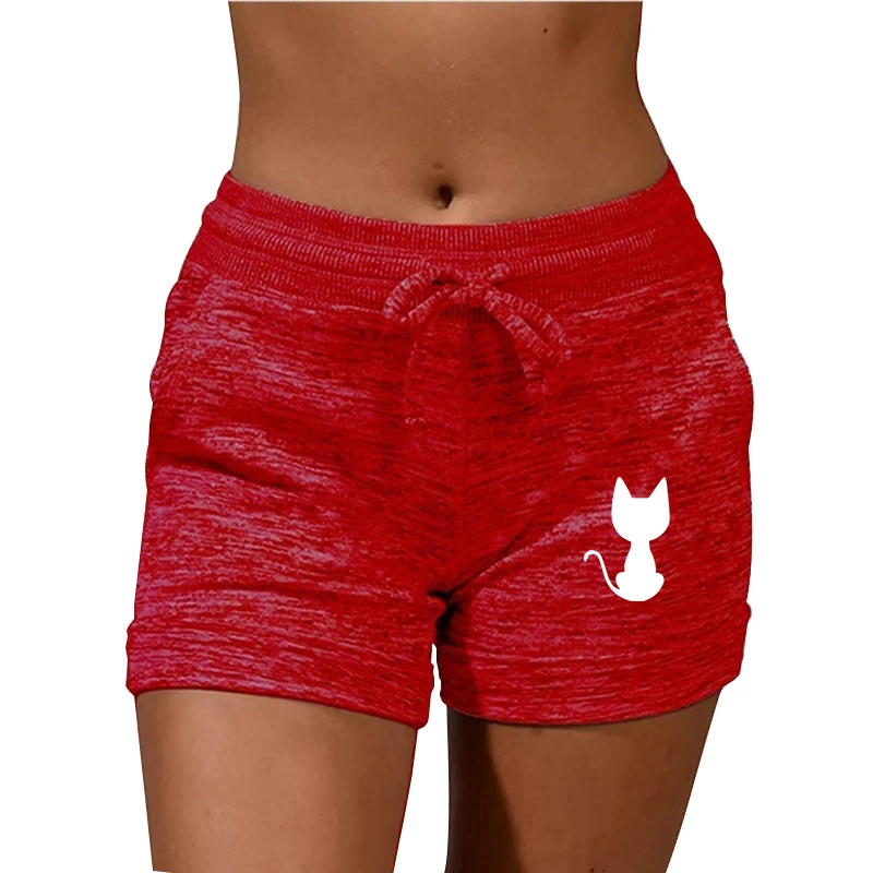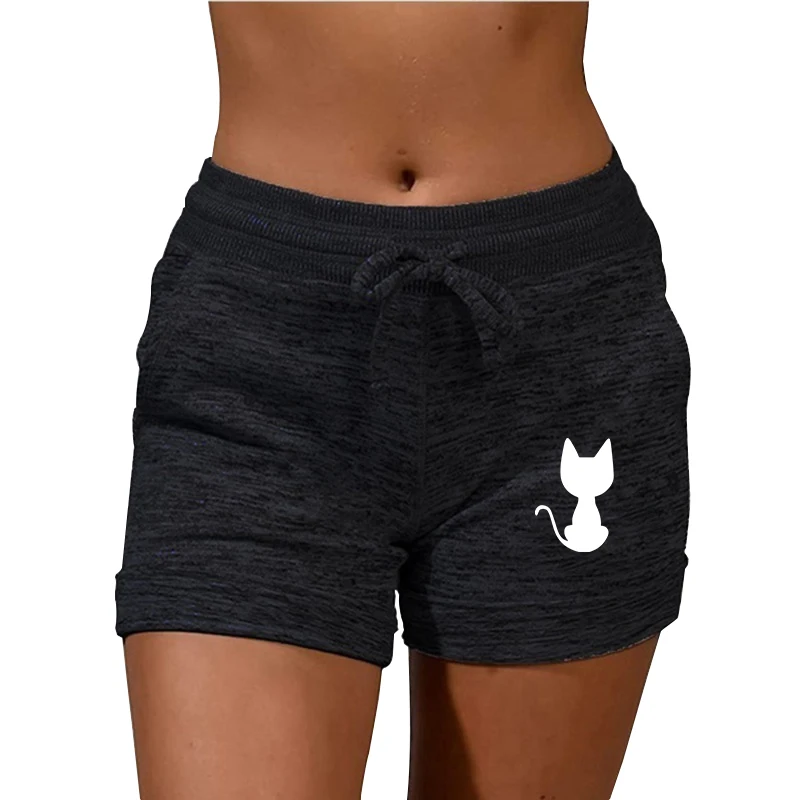 Шорты женские летние с заниженной талией и принтом в виде кошки