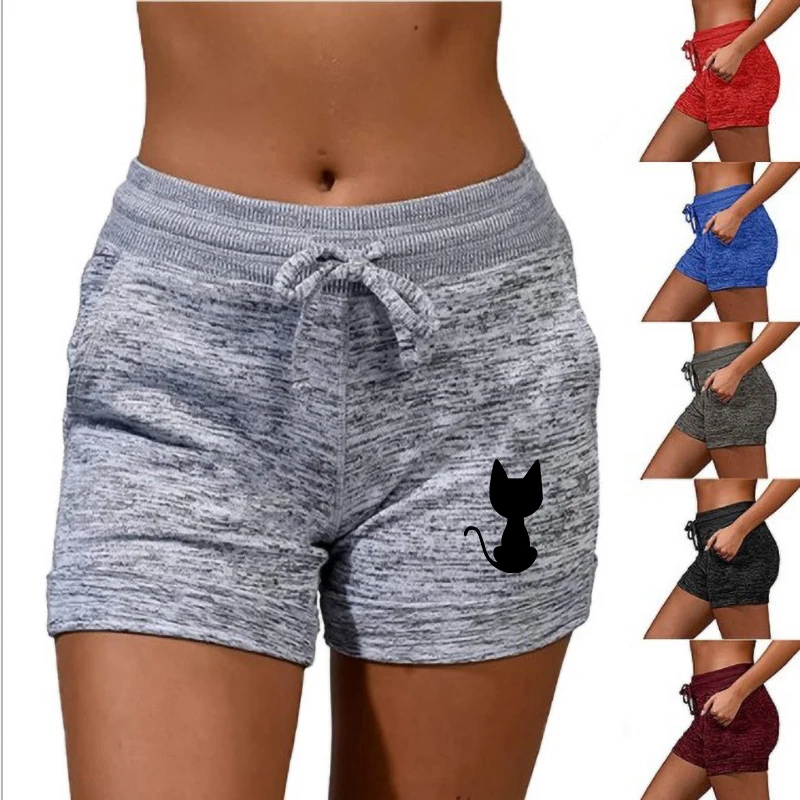 Женские облегающие шорты с принтом кошки, пляжная одежда на завязках с низкой талией, эластичные бесшовные леггинсы для фитнеса, тренировочные шорты с эффектом пуш-ап