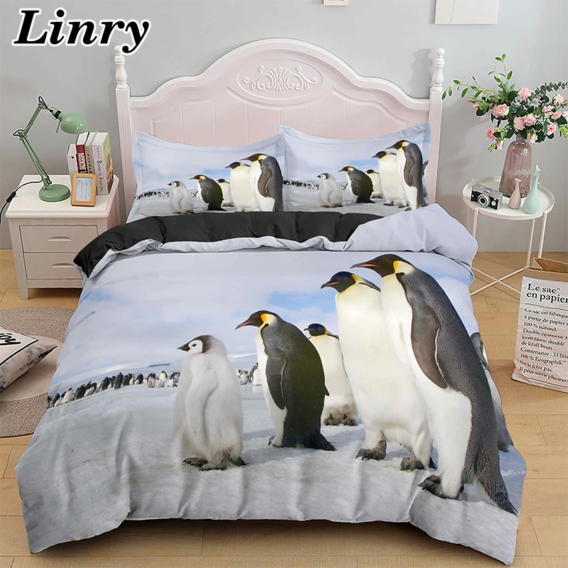 3D с милыми пингвинами Постельное белье дети пододеяльник набор Тви...