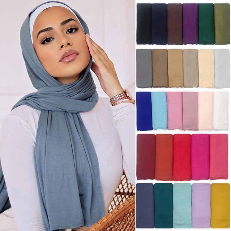 2020 мусульманский хиджаб Джерси-шарф мягкий однотонный платок женс...