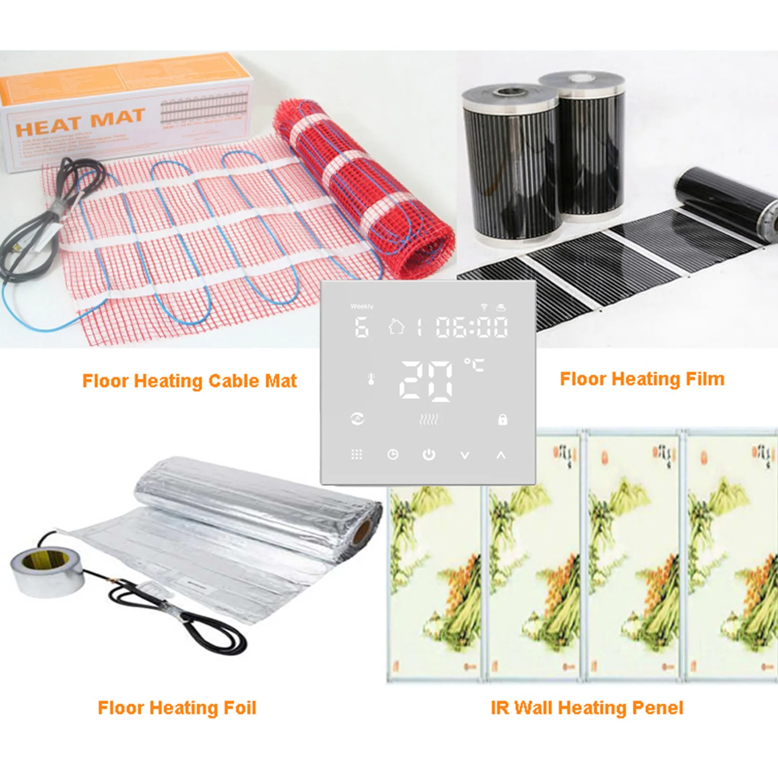 Wifi подпольный комнатный термостат водяной газовый котел электрическое Напольное отопление приложение удаленный сенсорный экран регулятор температурыWifi подпольный комнатный термостат водяной газовый котел электрическое Напольное отопление приложение удаленный сенсорный экран регулятор температурыЭтот продукт имеет характеристики нагрева специальный, многофункциональный, большой ЖК-дисплей. Он использует технологию управления микрокомпьютером. На основе результатов сравнения температуры в помещении и заданной температуры, запуск и остановка отопительного оборудования контролируются реле для достижения постоянной температуры в помещении и экономии энергии. Приходите и попробуйте.Особенности:Конструкция настенной пластины, которая делает установку легкой и быстрой, вы можете установить ее очень легко.Продукт имеет внутреннюю и внешнюю конструкцию датчика, что делает его более безопасным при использовании.Самой высокой точности может быть до 0,5 ℃, точный контроль температуры, которая вам нужна.С дизайном детского замка, не беспокойтесь о неправильной эксплуатации детей, более безопасно для использования.С функцией отключения памяти, лучше чувство использования, можно задать температуру внешнего датчика.Режим еженедельного программирования включает в себя: 5 + 2, 6 + 1, 7 дней три режима, и вы можете сделать самостоятельное программирование.Классический праздничный режим, чтобы вы могли наслаждаться комфортной температурой праздника.Временный ручной режим: в автоматическом режиме измените установленную температуру и введите временный ручной режим. Термостат будет работать до периода ne-xt в соответствии с измененной установленной температурой и вернется в автоматический режим.Характеристики:Питание: AC90-240VAC 50/60HZТочность: ± 0,5 °CДатчик зонда: NTCМощность Потребляемая мощность: <0,3 WТок нагрузки: 3A (нагрев воды),16A (электрическое отопление)Диапазон регулировки температуры: 5 °C - 35 °CПредельный Диапазон температур: 0-90 °CВыход: реле переключателяИзоляционное состояние: нормальная средаЗапуск программы: установка в течение 1 недели в качестве циклаУстановка: НастенныйПрименение: водное Напольное отопление коллектор, водное Напольное отопление моторизованный клапан, электрическая система подогрева пола, электрическая пленка для подогрева пола, инфракрасная система подогреваСертификат: CE,RoHSРазмер (мм):86*86*27 ммУпаковочный лист:1 x Wifi сенсорный экран подогрев пола комнатный термостат1 x Руководство пользователя