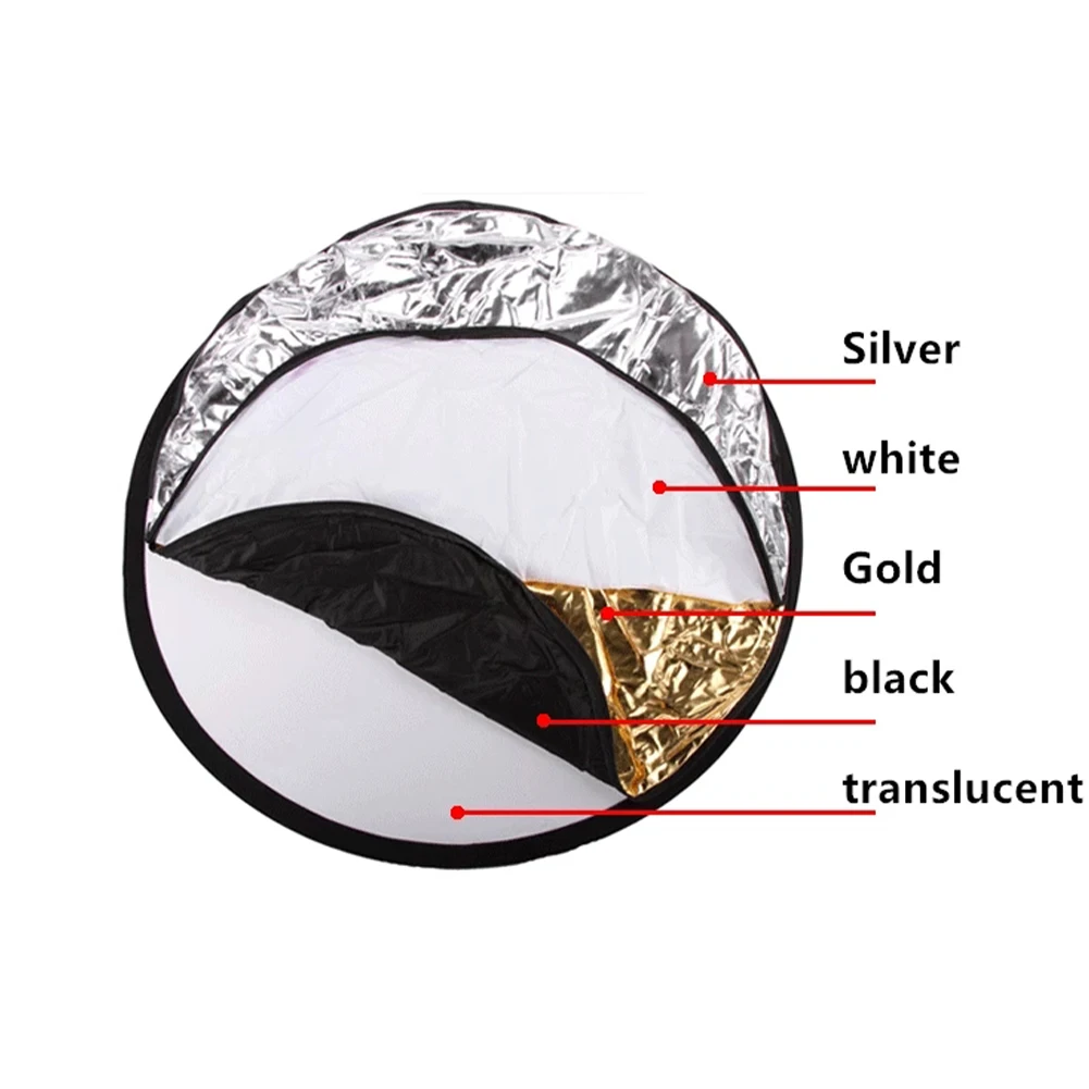 5 в 1 мульти-Отражатель: Золотой/Серебряный/белый/черный цвет и полупрозрачная панель для удовлетворения ваших различных потребностей фотографии.