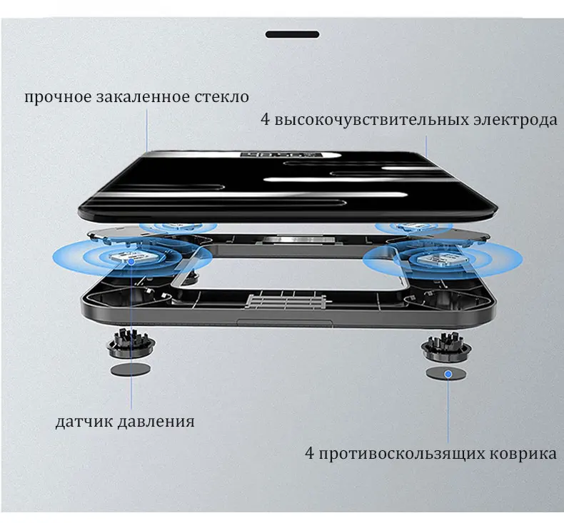 весы электронные Умные напольные весы Ванная комната весы Весы гиря тела электроника для дома Стеклянное зеркало Анализируйте состав тела Баланс ИМТ Беспроводной bluetooth Синхронизировать приложения Рекордный гиря