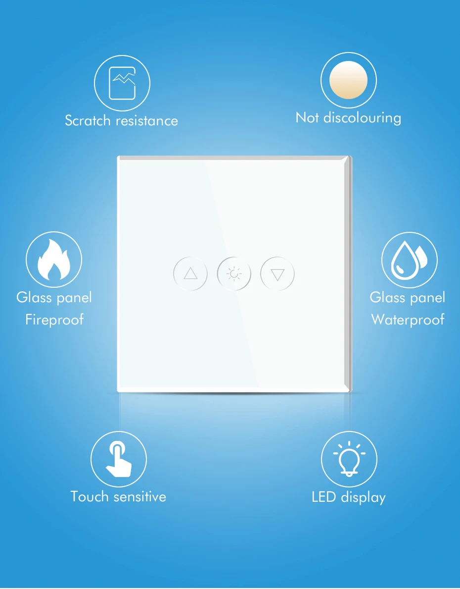 Умный переключатель BSEED Zigbee, регулятор яркости, сенсорный выключатель света, управление умным домом, панель из хрустального стекла, Синяя подсветка, стандарт ЕС