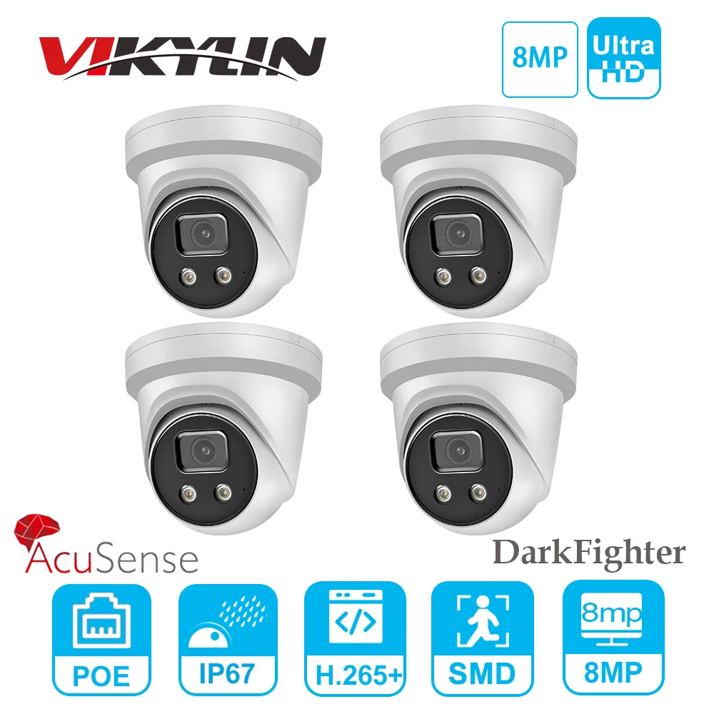 Оригинальная 8-мегапиксельная IP-камера AcuSense с питанием по Ethernet, встроенный микрофон, слот для SD-карты, H265 + IP67, классификация человеческих автомобилей, 4 шт.