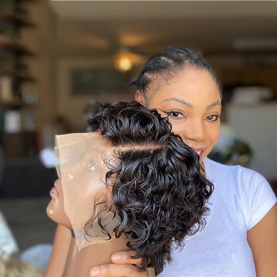 Парик фея, Короткие вьющиеся волосы, парики из человеческих волос, ...