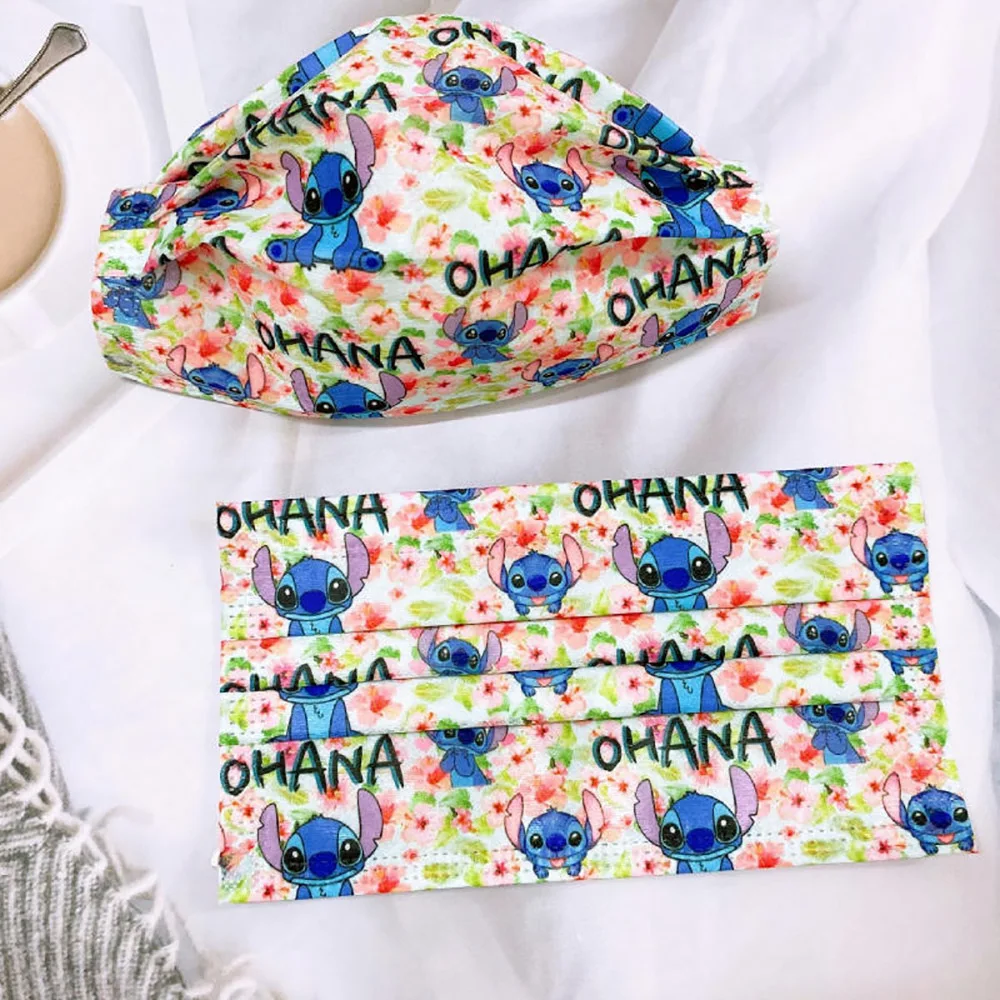 50 шт. маски для взрослых с принтом Диснея Стич Микки Маус Пух медведь StellaLou Милая мультяшная аниме маска женская Пылезащитная маска для рта
