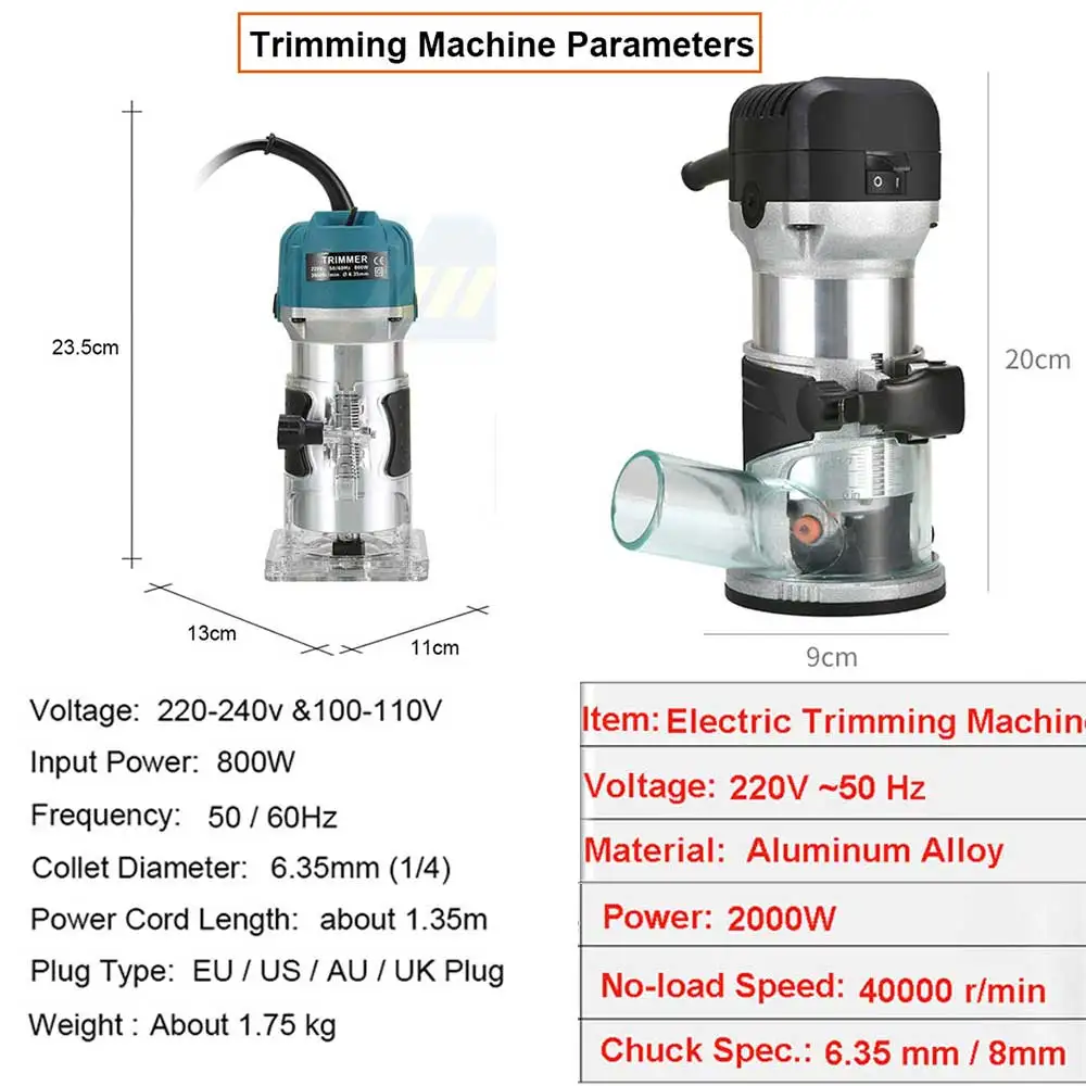 Электрический триммер для дерева сделай сам, 800 Вт и 2000 Вт, фрезы 8 мм для дерева, ручной роутер 6,35 и 8 мм, наборы электрических инструментов, российский склад в ЕС