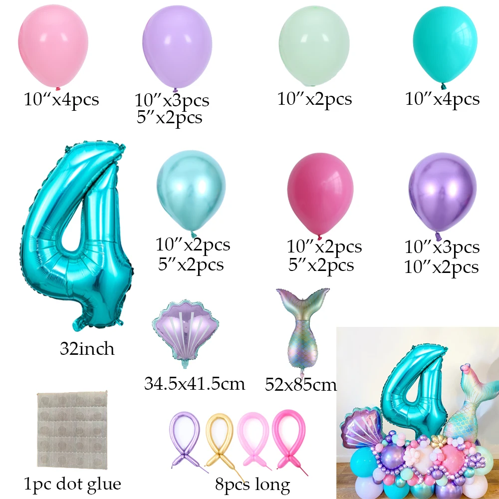 40 шт. набор воздушных шаров с хвостом Русалочки, 32 дюйма, Тиффани, голубые цифры, 1, 2, 3, из фольги, маленькая Русалочка, украшение на день рождения для девочек, для будущей мамы