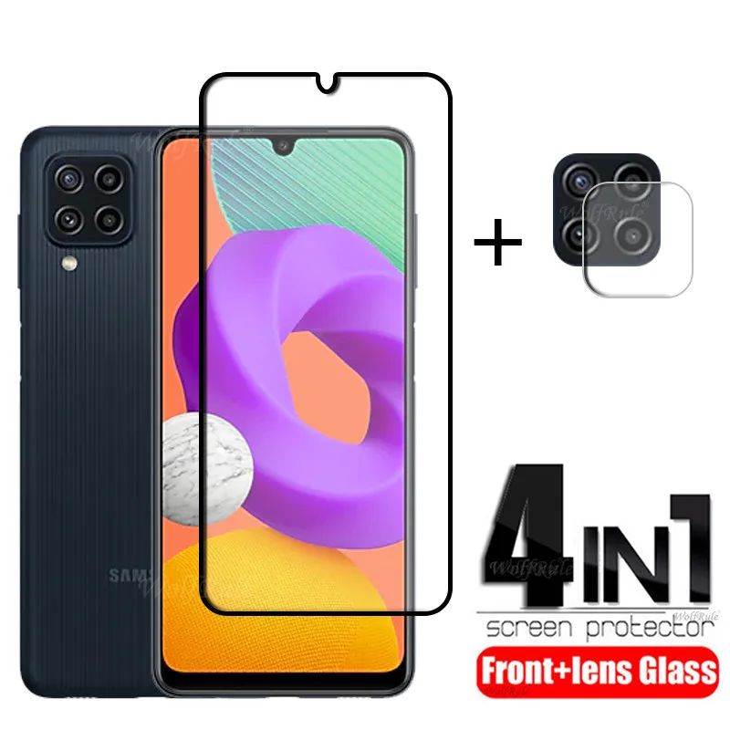 4-в-1 для Samsung Galaxy M22 стекло для Samsung M22 закаленное стекло полное покрытие HD Защита экрана для Samsung M12 M22 стекло объектива