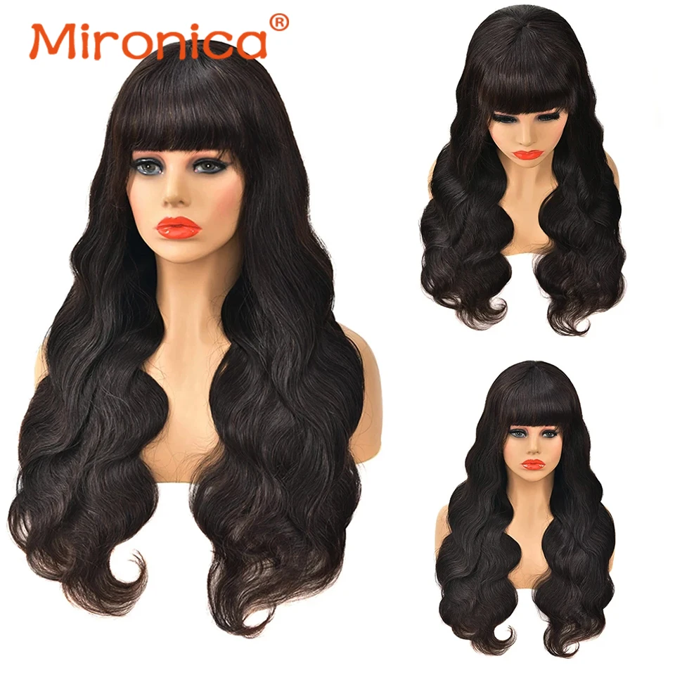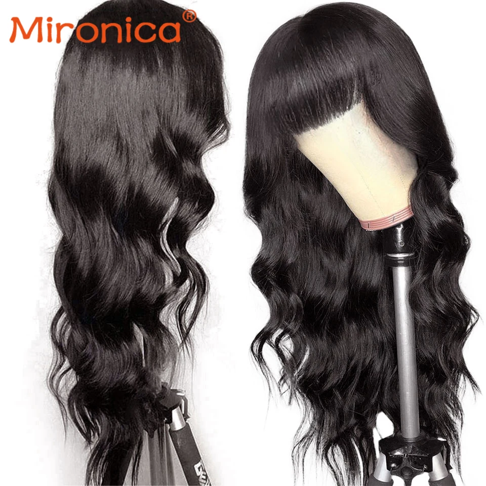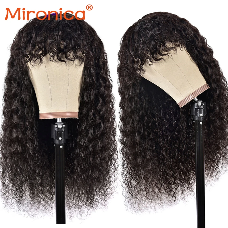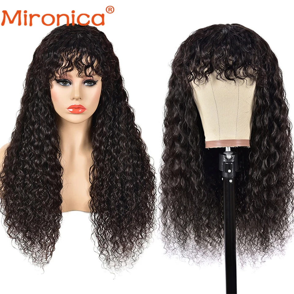 Парик из человеческих волос с челкой, парик только для машинной работы, парик из человеческих волос Remy, бразильский парик из человеческих волос с водной волной для женщин, быстрая доставка