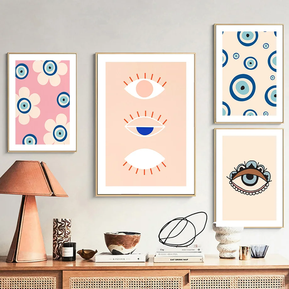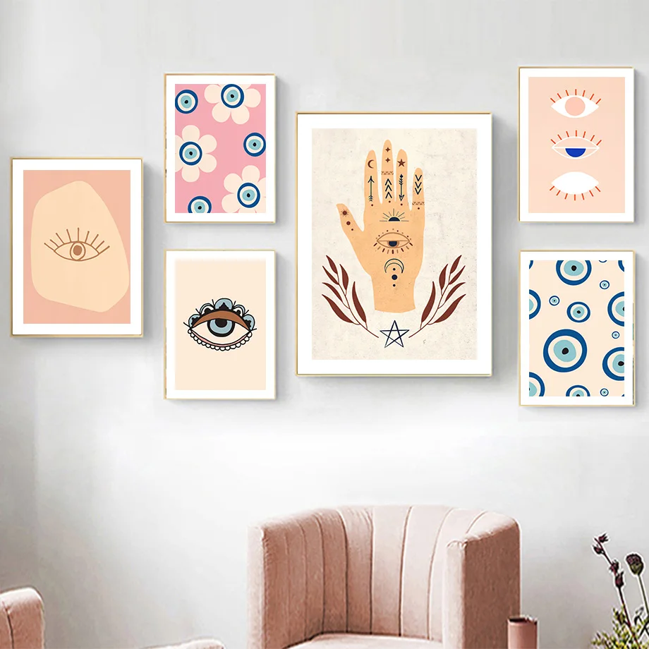 Lucky турецкий греческий глаз злые глаза Хамса ручная роспись на холсте скандинавские постеры и принты Бохо картины для домашнего декора