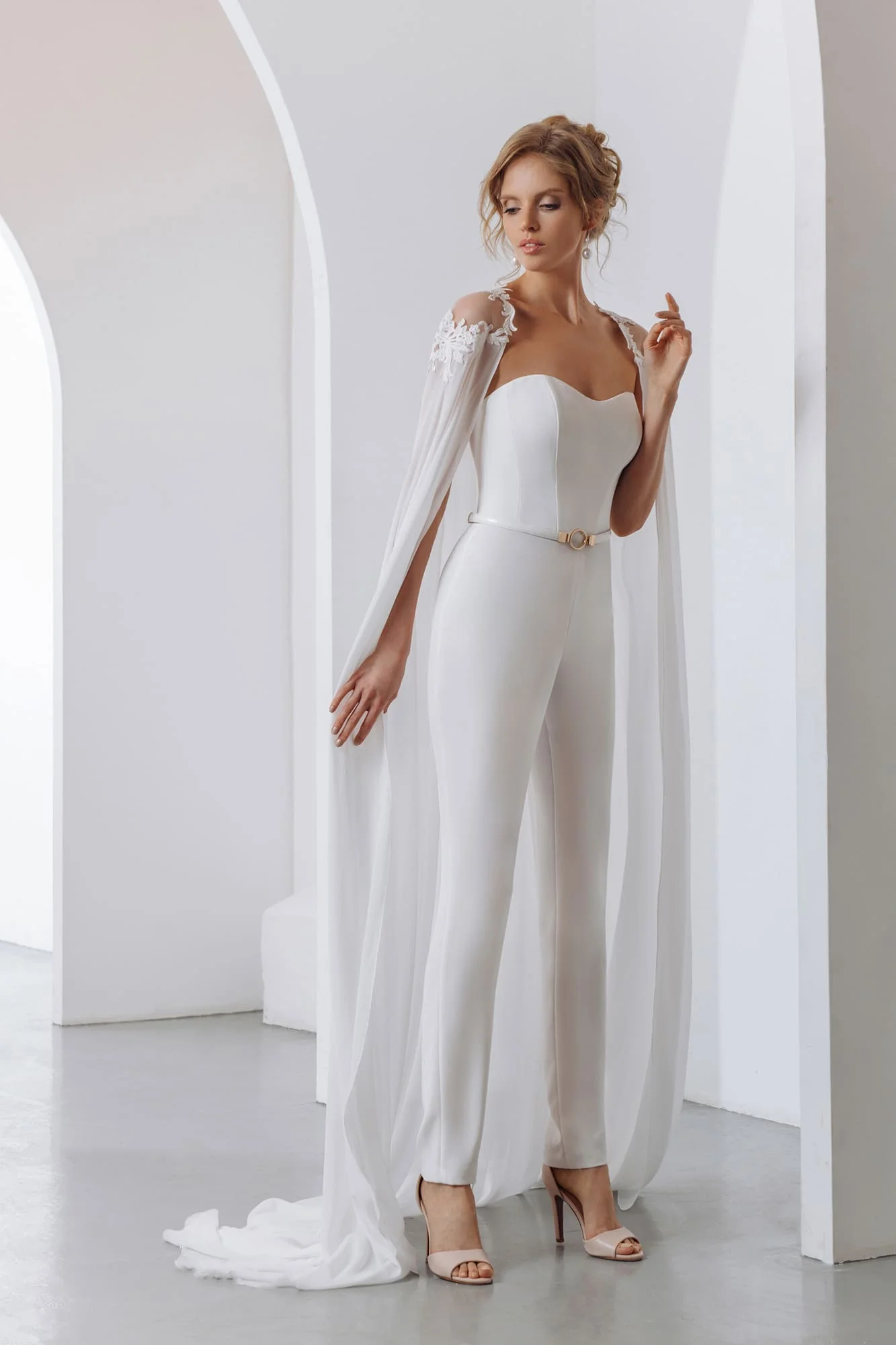 Женский Свадебный комбинезон, элегантный длинный накидка из тюля, без бретелек, с аппликацией, 2021