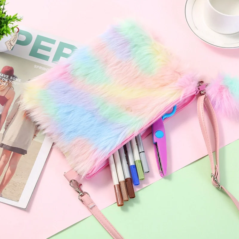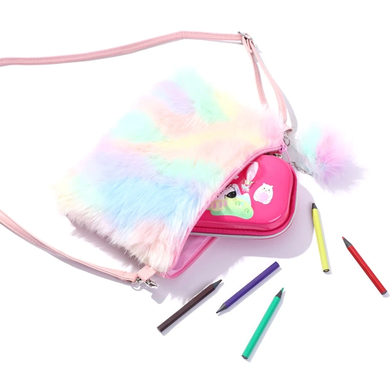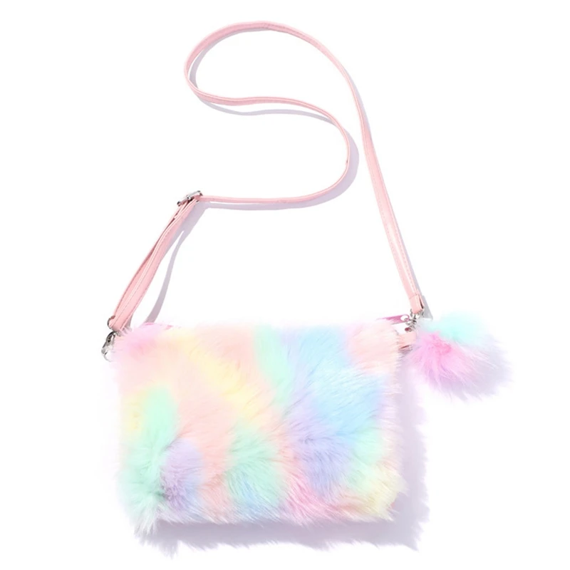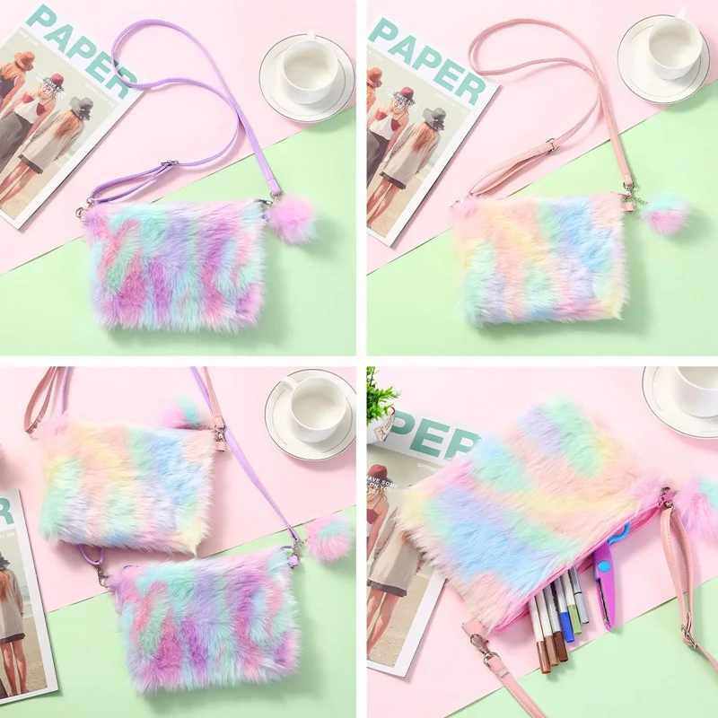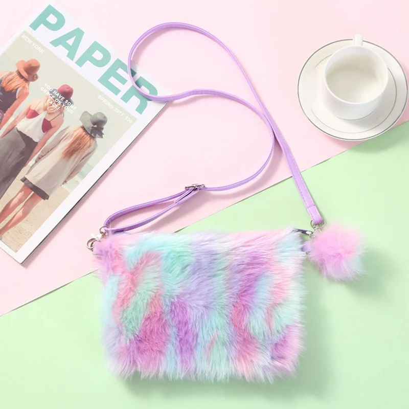 Радужная плюшевая сумка-мессенджер, детская мини-сумка, зимняя грелка для рук, кошелек для монет, сумки на плечо, женские мягкие Меховые кошельки