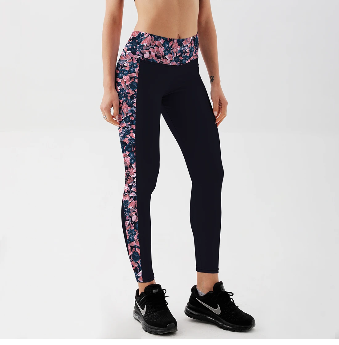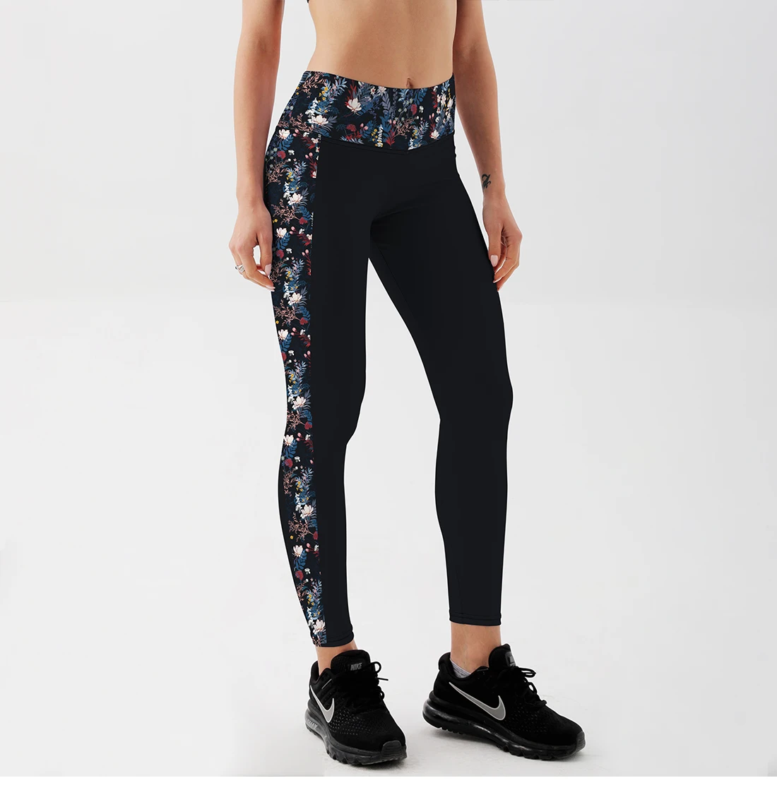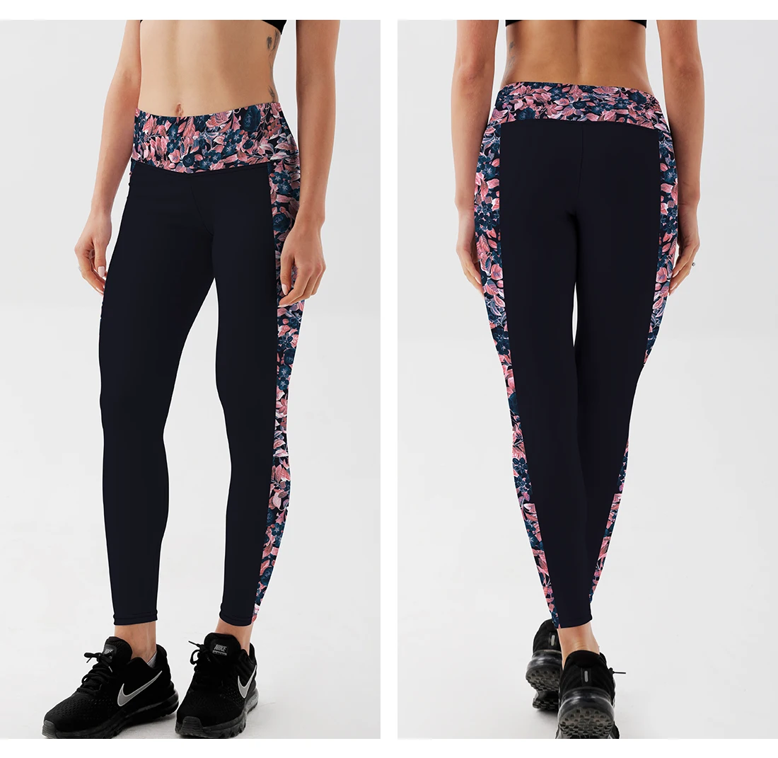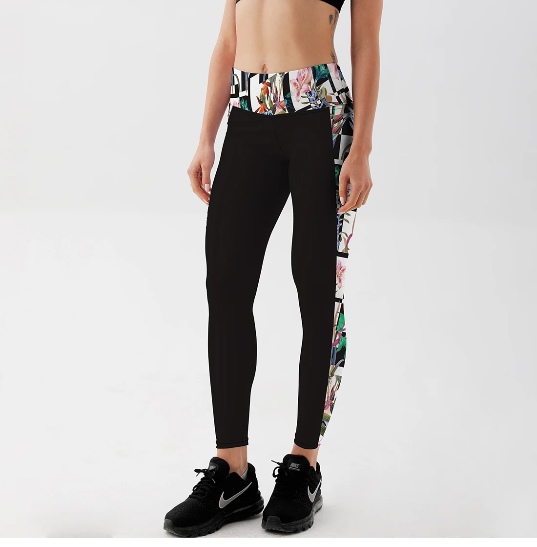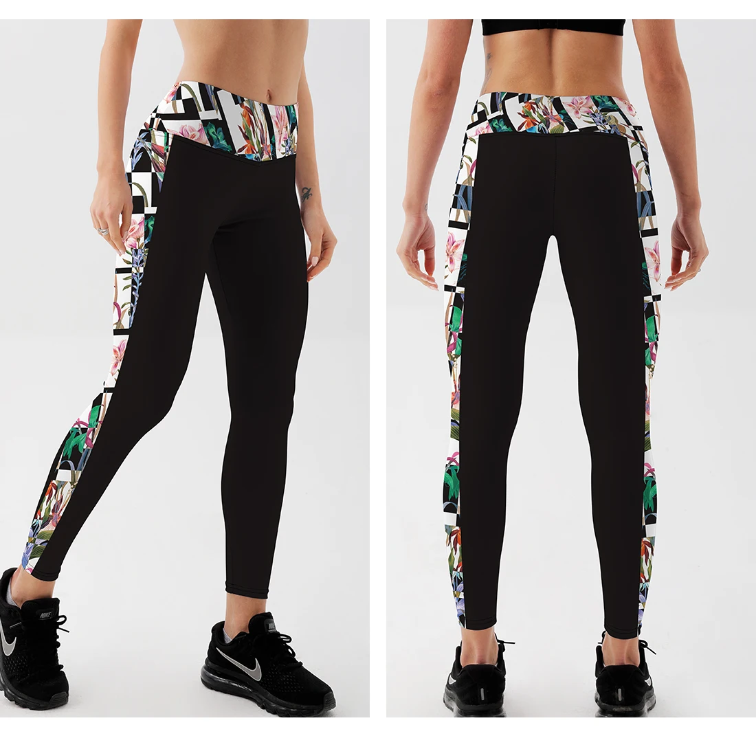 Леггинсы женские, черные, с цветочным принтом, с высокой талией