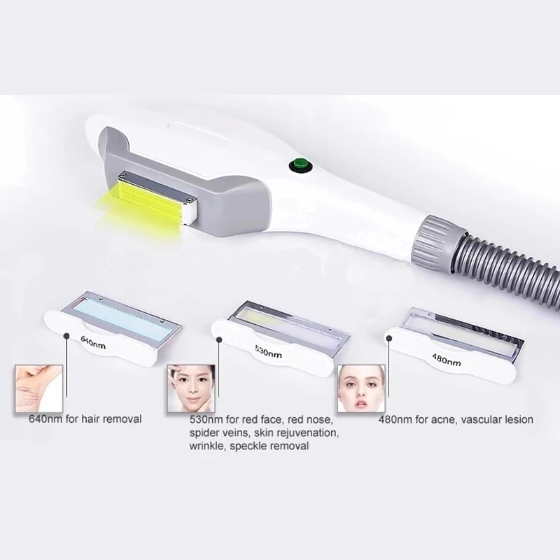Применение1) Удаление линии бровей, линии глаз, линии губ... и т. Д.2) удаление татуировок (красный, синий, черный... и т. Д.)3) зазор, черный naevus, шея, возрастные пятна... и т. Д.4) Удаление сосудистого повреждения и спайдерсоса... и т. Д.5) удаление волос и омоложение кожиОсобенности1. Новейшая Мобильная технология фототерапии, быстрая и эффективная.2. Новейшая технология импульса, отсутствие боли, легкое и удобное удаление волос.3.Plug-and-play подключаемый разъем, конструкция разделения воды и электричества, безопасная, более простая установка.4. Поток воды, система самопроверки температуры воды, система самокоррекции для обеспечения безопасной работы машины.5. Уникальный дизайн и цвет делают изделие более красивым и модным.