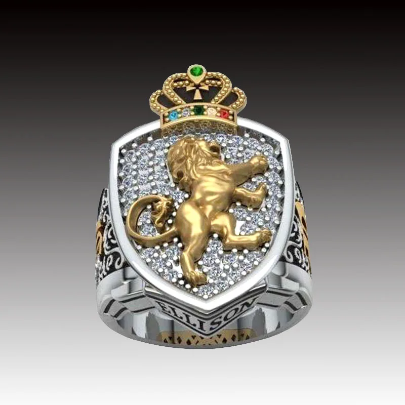 прикольные бижутерия кольцо мужское Взрывная Корона, значок с Львом...