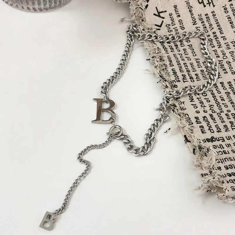 Корейская мода, новое готическое ожерелье из нержавеющей стали для женщин хип-хоп, кубинский звеньевой цепи, колье-чокер с буквой В, ювелирные изделия