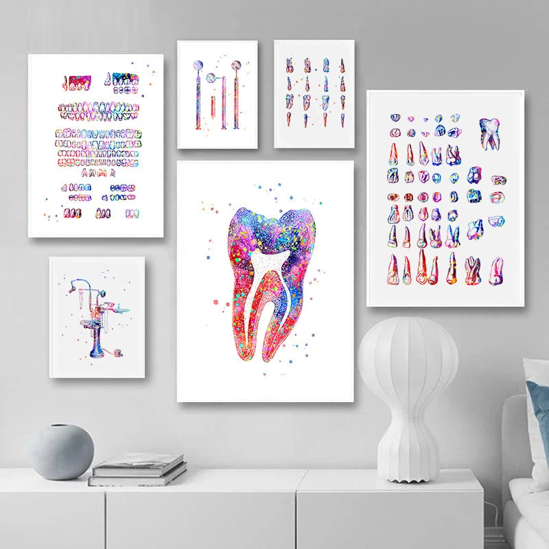 Стоматологическая живопись на холсте, Декоративные плакаты с рисунком зубов в стиле минимализма, медицинская живопись, для студентов, больниц, декор комнаты