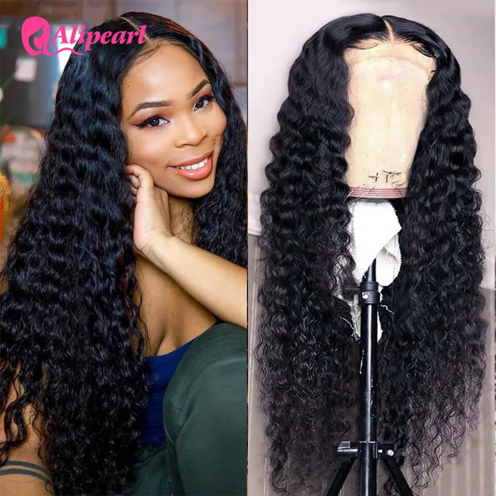 AliPearl Hair HD 4x4, парики из человеческих волос на сетке для женщин, перуанские, глубокие волны, прозрачный парик на сетке, предварительно выщипанные 28-дюймовые AliPearl
