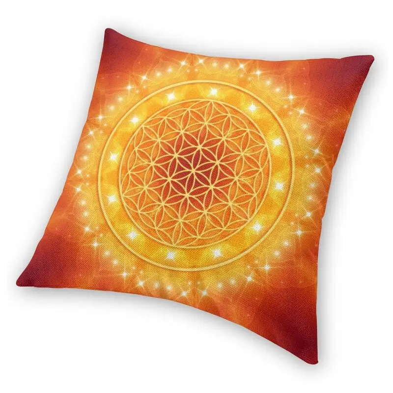 Декоративная подушка в виде цветка жизни с золосветильник светом, 40x40