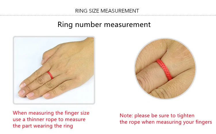 Чтобы узнать правильный размер кольца, вам нужно только нить или кусок бумаги. Оберните нить или бумагу вокруг части пальца, где вы хотели бы носить кольцо, а затем Измерьте его длину. Длина, измеренная в миллиметрах, будет внутренней окружностью кольца.